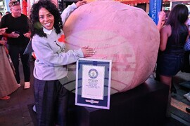 IMAGE DISTRIBUTED FOR UCB, INC. - UCB's Make HStory unveils world record-setting bandage ball in Times Square, highlighting the daily burden of living with hidradenitis suppurativa. Image taken on Saturday, Oct. 4, 2025 in New York. (Diane Bondareff/AP Content Services for UCB, Inc.)