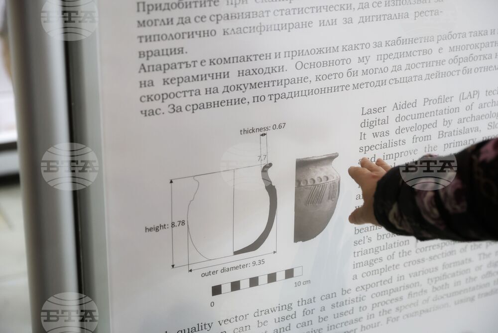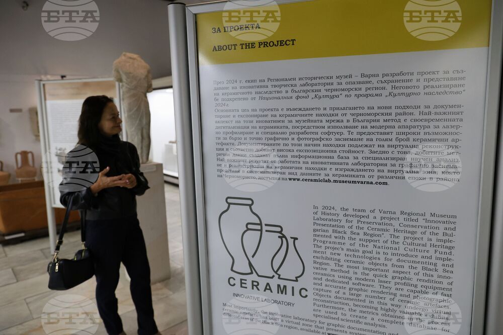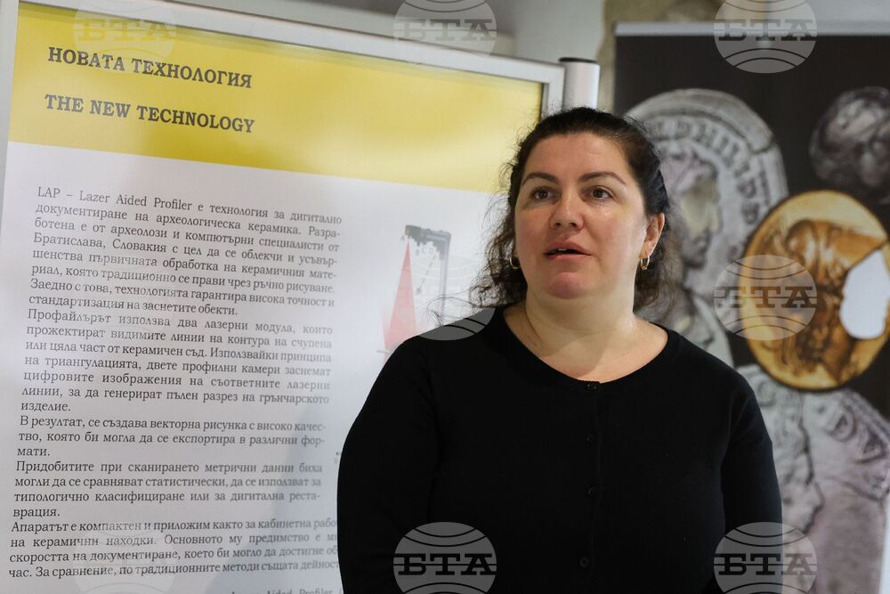 Бургас (16 октомври 2025) В Археологическия музей се открива постерната изложба с керамика: „Тракийската керамика от Равна и Добрина - поглед към богатото археологическо наследство на Провадия". Изложбата се реализира от екипа на отдел „Археология" при Регионален исторически музей - Варна, в партньорство с Регионален исторически музей - Бургас и с финансовата подкрепа на Национален фонд „Култура". Експозицията цели да популяризира археологическото наследство на Провадия и региона като представи красотата и символиката на керамичните съдове, които са открити при археологически проучвания в селищата Равна и Добрина. Изложбата показва още и иновативните методи за графично изобразяване на керамични обекти - технологията лазерен профайлър. На снимката: мениджърът проекти в Регионален исторически музей - Варна Деница Йорданова.