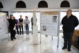 Бургас (16 октомври 2025) В Археологическия музей се открива постерната изложба с керамика: „Тракийската керамика от Равна и Добрина - поглед към богатото археологическо наследство на Провадия". Изложбата се реализира от екипа на отдел „Археология" при Регионален исторически музей - Варна, в партньорство с Регионален исторически музей - Бургас и с финансовата подкрепа на Национален фонд „Култура". Експозицията цели да популяризира археологическото наследство на Провадия и региона като представи красотата и символиката на керамичните съдове, които са открити при археологически проучвания в селищата Равна и Добрина. Изложбата показва още и иновативните методи за графично изобразяване на керамични обекти - технологията лазерен профайлър. На снимката: директорът на Регионален исторически музей - Бургас д-р Милен Николов.