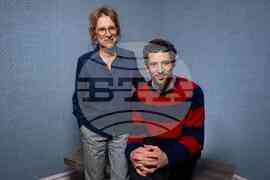Director Kelly Reichardt, left, and Josh O'Connor pose for a portrait to promote the film "The Mastermind" in London on Monday, Oct. 13, 2025. (Photo by Scott A Garfitt/Invision/AP)