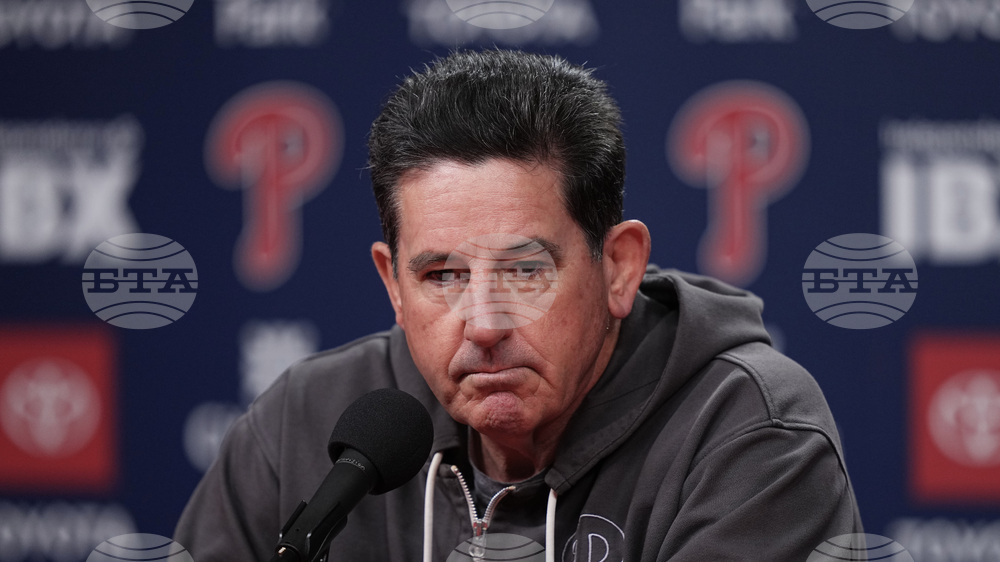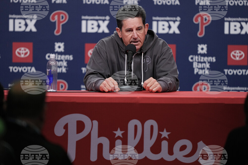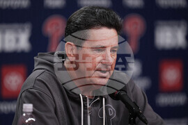 Philadelphia Phillies manager Rob Thomson speaks during a baseball news conference, Thursday, Oct. 16, 2025, in Philadelphia. (AP Photo/Matt Rourke)