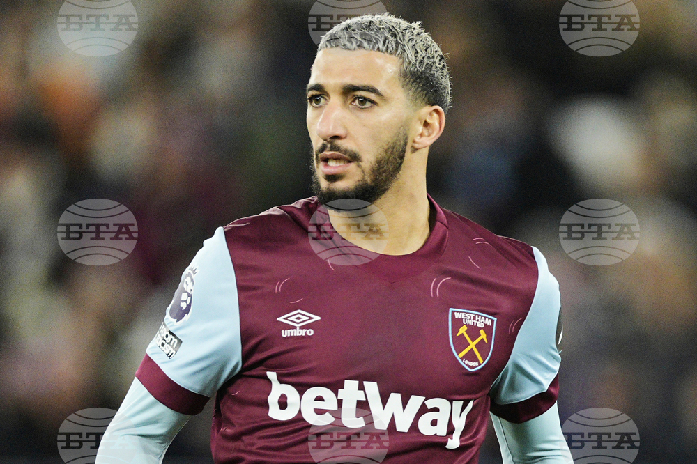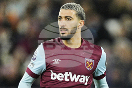West Ham United's Said Benrahma into position during an English Premier League soccer match against Brighton and Hove Albion at The London Stadium in London, Tuesday, Jan. 2, 2024. (AP Photo/Dave Shopland, File)