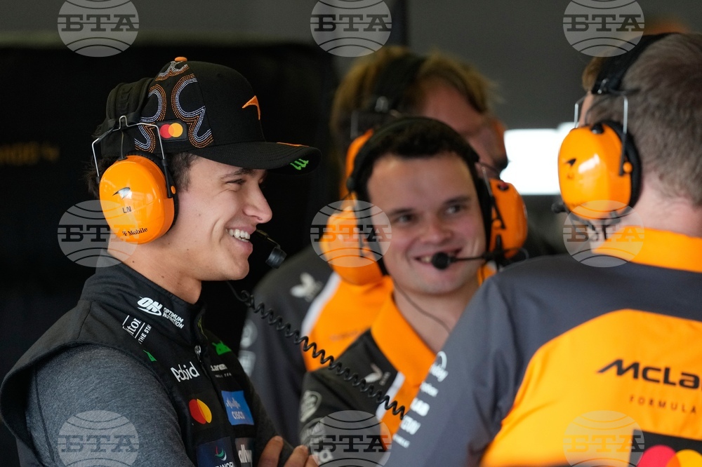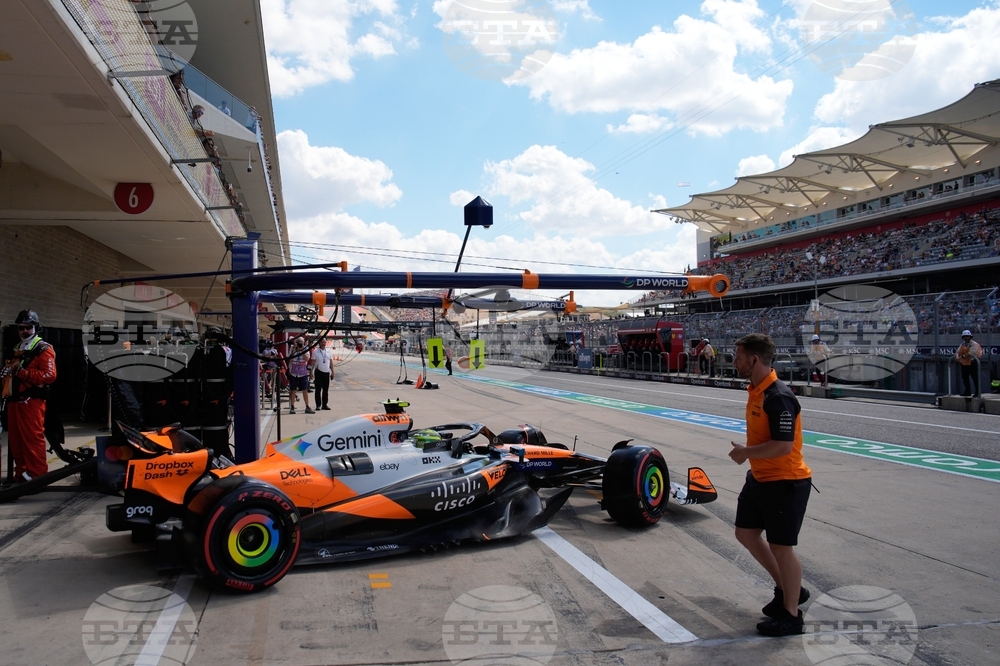 McLaren driver Lando Norris of Great Britain leaves the pits during a practice session the Formula One U.S. Grand Prix auto race at the Circuit of the Americas, Friday, Oct. 17, 2025, in Austin, Texas. (AP Photo/John Locher)