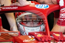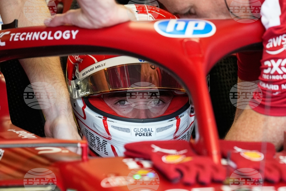 Ferrari driver Charles Leclerc of Monaco sits in his car before a practice session the Formula One U.S. Grand Prix auto race at the Circuit of the Americas, Friday, Oct. 17, 2025, in Austin, Texas. (AP Photo/John Locher)