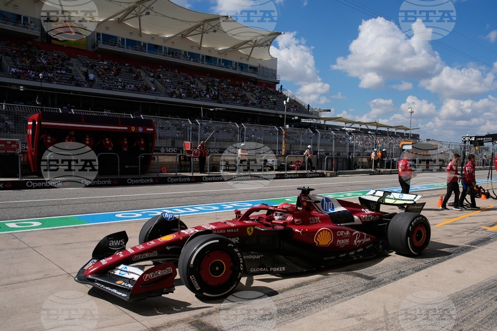 Ferrari driver Charles Leclerc of Monaco leaves the pits during a practice session the Formula One U.S. Grand Prix auto race at the Circuit of the Americas, Friday, Oct. 17, 2025, in Austin, Texas. (AP Photo/John Locher)