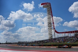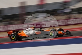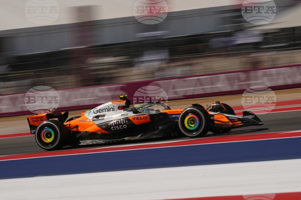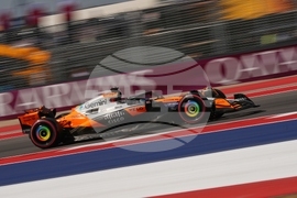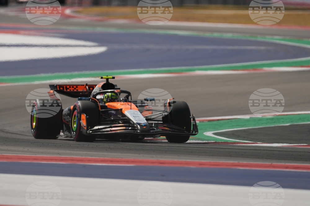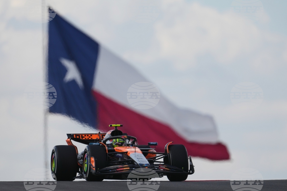 McLaren driver Lando Norris of Great Britain drives during a practice session the Formula One U.S. Grand Prix auto race at the Circuit of the Americas, Friday, Oct. 17, 2025, in Austin, Texas. (AP Photo/Eric Gay)