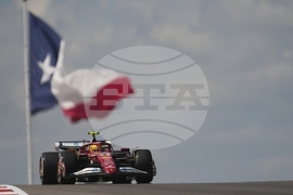 Ferrari driver Charles Leclerc of Monaco drives during a practice session the Formula One U.S. Grand Prix auto race at the Circuit of the Americas, Friday, Oct. 17, 2025, in Austin, Texas. (AP Photo/Eric Gay)
