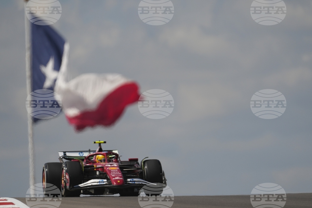 Ferrari driver Lewis Hamilton of Great Britain drives during a practice session the Formula One U.S. Grand Prix auto race at the Circuit of the Americas, Friday, Oct. 17, 2025, in Austin, Texas. (AP Photo/Eric Gay)
