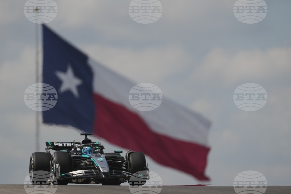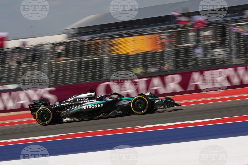Mercedes driver George Russell of Great Britain drives during a practice session the Formula One U.S. Grand Prix auto race at the Circuit of the Americas, Friday, Oct. 17, 2025, in Austin, Texas. (AP Photo/Eric Gay)