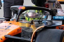 McLaren driver Lando Norris of Great Britain sits in his car during a practice session the Formula One U.S. Grand Prix auto race at the Circuit of the Americas, Friday, Oct. 17, 2025, in Austin, Texas. (AP Photo/John Locher)