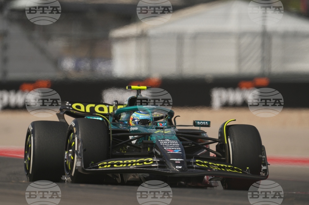 Aston Martin driver Fernando Alonso of Spain drives during a practice session the Formula One U.S. Grand Prix auto race at the Circuit of the Americas, Friday, Oct. 17, 2025, in Austin, Texas. (AP Photo/Eric Gay)
