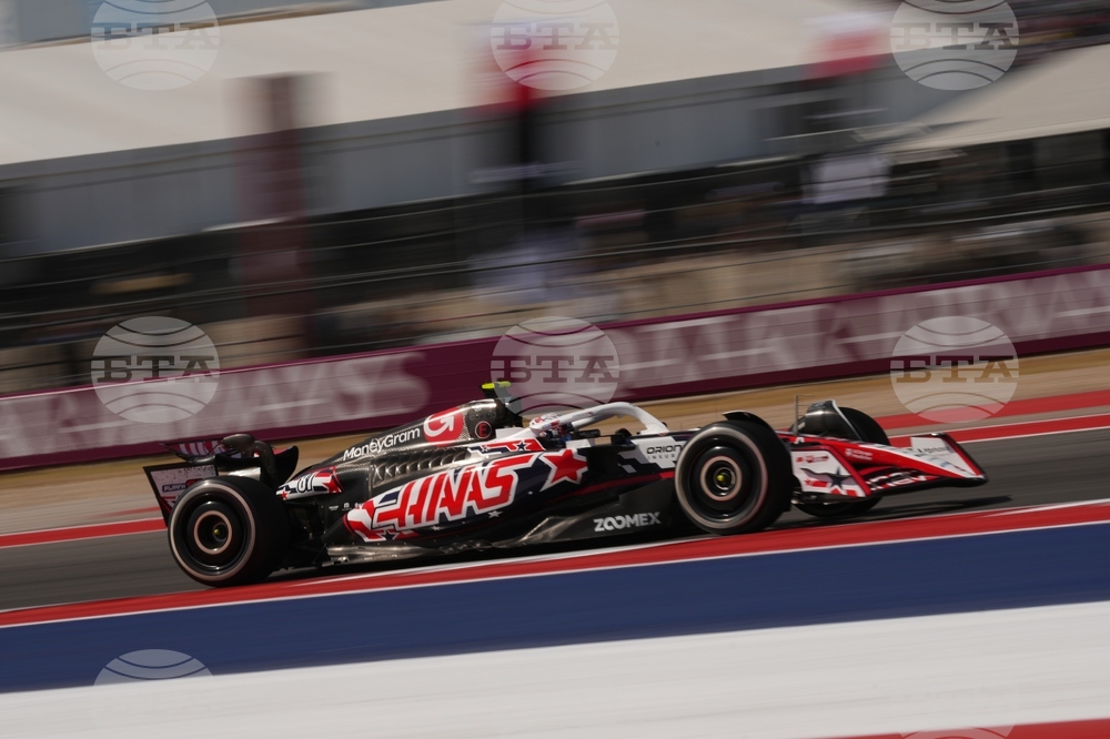 Haas driver Oliver Bearman of Great Britain drives during a practice session the Formula One U.S. Grand Prix auto race at the Circuit of the Americas, Friday, Oct. 17, 2025, in Austin, Texas. (AP Photo/Eric Gay)