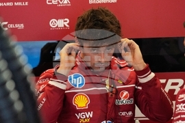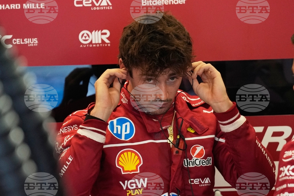 Ferrari driver Charles Leclerc of Monaco looks at practice time following a practice session the Formula One U.S. Grand Prix auto race at the Circuit of the Americas, Friday, Oct. 17, 2025, in Austin, Texas. (AP Photo/John Locher)