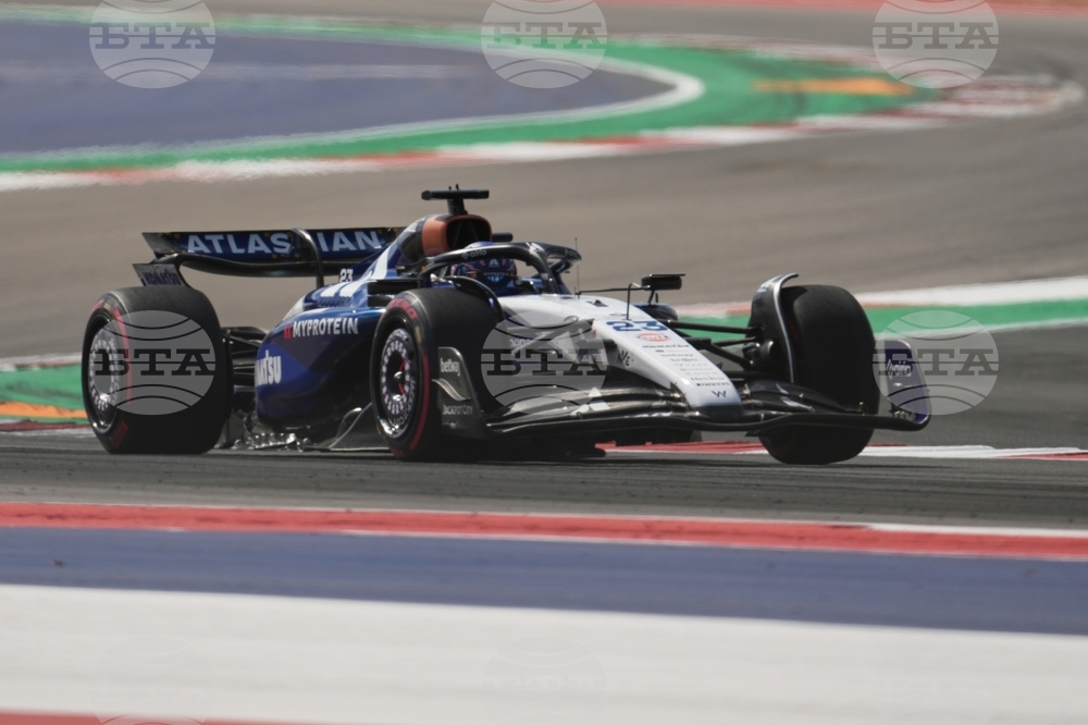 Williams driver Alexander Albon of Thailand drives during a practice session the Formula One U.S. Grand Prix auto race at the Circuit of the Americas, Friday, Oct. 17, 2025, in Austin, Texas. (AP Photo/Eric Gay)