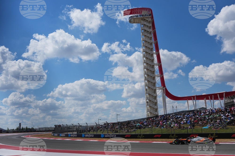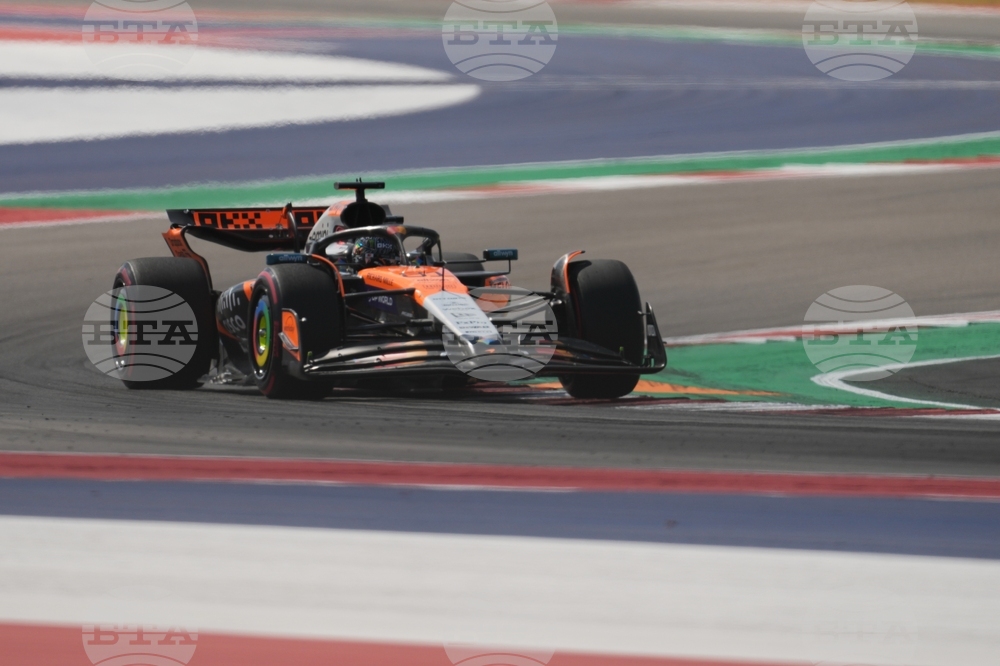 McLaren driver Oscar Piastri of Australia drives during a practice session the Formula One U.S. Grand Prix auto race at the Circuit of the Americas, Friday, Oct. 17, 2025, in Austin, Texas. (AP Photo/Eric Gay)