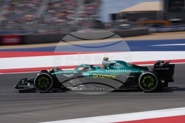 Aston Martin driver Fernando Alonso of Spain drives during a practice session the Formula One U.S. Grand Prix auto race at the Circuit of the Americas, Friday, Oct. 17, 2025, in Austin, Texas. (AP Photo/Nick Didlick)