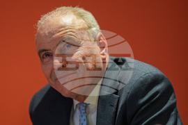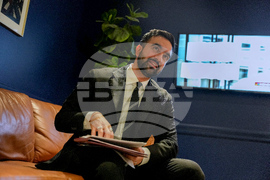 Republican candidate Curtis Sliwa waits in the green room before participating in a mayoral debate, Thursday, Oct. 16, 2025, in New York. (AP Photo/Angelina Katsanis, Pool)