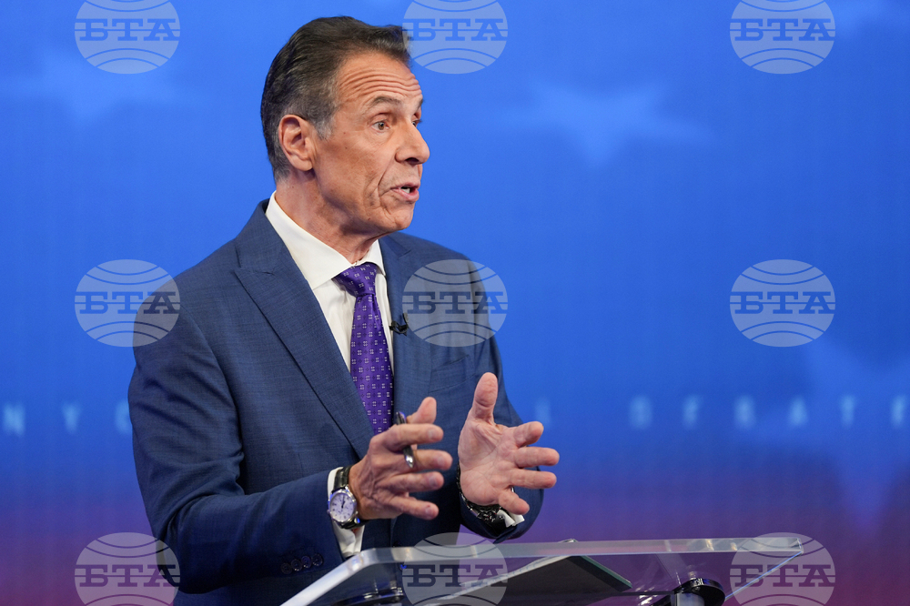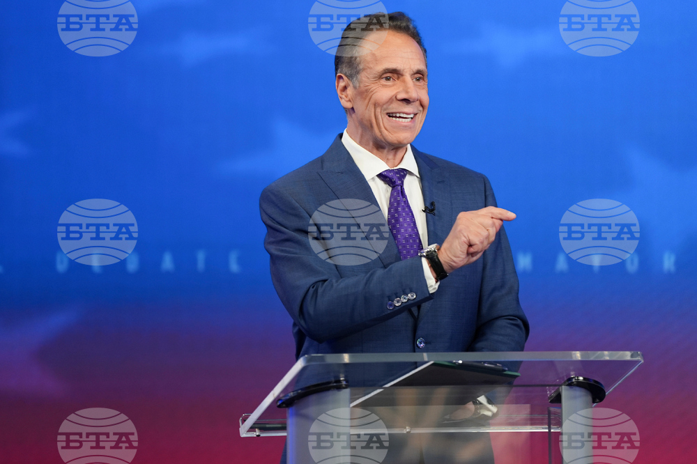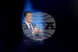 Independent candidate former New York Gov. Andrew Cuomo participates in a mayoral debate with Republican candidate Curtis Sliwa and Democratic candidate Zohran Mamdani, Thursday, Oct. 16, 2025, in New York. (AP Photo/Angelina Katsanis, Pool)