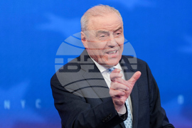 Republican candidate Curtis Sliwa, right, speaks while participating in a mayoral debate with independent candidate former New York Gov. Andrew Cuomo, left and Democratic candidate Zohran Mamdani (not pictured), Thursday, Oct. 16, 2025, in New York. (AP Photo/Angelina Katsanis, Pool)
