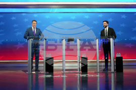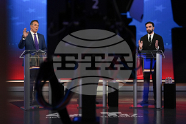 Independent candidate former New York Gov. Andrew Cuomo, left, and Democratic candidate Zohran Mamdani participate in a mayoral debate, Thursday, Oct. 16, 2025, in New York. (AP Photo/Angelina Katsanis, Pool)