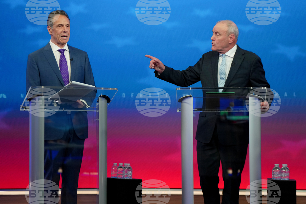 Independent candidate former New York Gov. Andrew Cuomo, left, and Republican candidate Curtis Sliwa participate in a mayoral debate, Thursday, Oct. 16, 2025, in New York. (AP Photo/Angelina Katsanis, Pool)