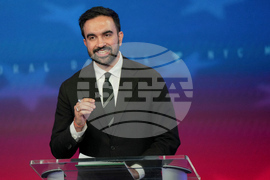 Democratic candidate Zohran Mamdani speaks to members of the media after participating in a mayoral debate, Thursday, Oct. 16, 2025, in New York. (AP Photo/Angelina Katsanis, Pool)