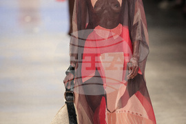 EDS NOTE: NUDITY - A model wears a creation from the Marina Bitu collection during Sao Paulo Fashion Week, Thursday, Oct. 16, 2025. (AP Photo/Ettore Chiereguini)