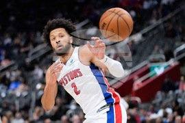 Detroit Pistons guard Cade Cunningham catches a pass during the first half of a preseason NBA basketball game against the Washington Wizards Thursday, Oct. 16, 2025, in Detroit. (AP Photo/Ryan Sun)