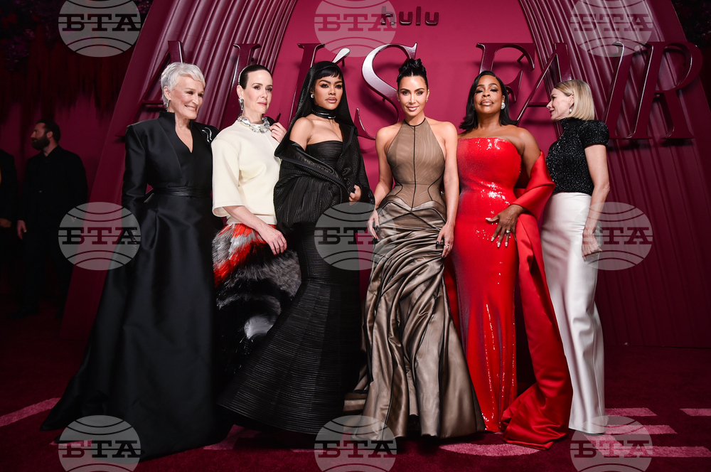 Glenn Close, from left, Sarah Paulson, Teyana Taylor, Kim Kardashian, Niecy Nash, and Naomi Watts arrive at the premiere of "All's Fair" on Thursday, Oct. 16, 2025, at DGA Theater Complex in Los Angeles. (Photo by Richard Shotwell/Invision/AP)