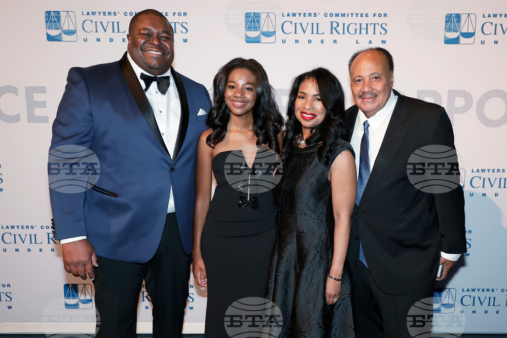 IMAGE DISTRIBUTED FOR LAWYERS' COMMITTEE FOR CIVIL RIGHTS - Damon Hewitt, the Lawyers' Committee President and Executive Director, Yolanda Renee King, Arndrea W. King and Martin Luther King III pose during the Higginbotham Leadership Awards Gala at Cipriani Wall Street on Thursday, Oct. 16, 2025 in New York. Yolanda Renee King received the 2025 Catalyst Award in recognition of her efforts to inspire the next generation of social justice activists. (Adam Hunger/AP Content Services for Lawyers' Committee for Civil Rights)