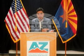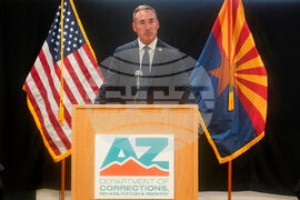 ADCRR Deputy Director John Barcello speaks about the execution of inmate Richard Djerf at the Arizona State Prison, Friday, Oct. 17, 2025 in Florence, Ariz. (AP Photo/Darryl Webb)