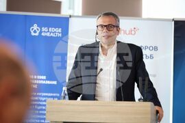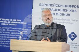 Бургас (17 октомври 2025) Третото издание на конференцията за изкуствен интелект, иновации и цифрова трансформация „Burgas Digital 2025“ се открива в Конгресния център на Морска гара. Тазгодишното издание на събитието се провежда под мотото „Изчисли бъдещето“ и събира на едно място представители на бизнеса, публичния сектор и академичните среди, за да обменят опит и представят най-новите решения в областта на цифровизацията и изкуствения интелект. На снимката: управителят на Сдружение за научноизследователска и развойна дейност „Sofia Tech Park“ Михаил Илиев.