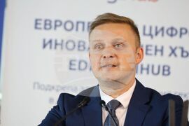 Бургас (17 октомври 2025) Третото издание на конференцията за изкуствен интелект, иновации и цифрова трансформация „Burgas Digital 2025“ се открива в Конгресния център на Морска гара. Тазгодишното издание на събитието се провежда под мотото „Изчисли бъдещето“ и събира на едно място представители на бизнеса, публичния сектор и академичните среди, за да обменят опит и представят най-новите решения в областта на цифровизацията и изкуствения интелект. На снимката: заместник-министърът на иновациите и растежа Мартин Дановски.