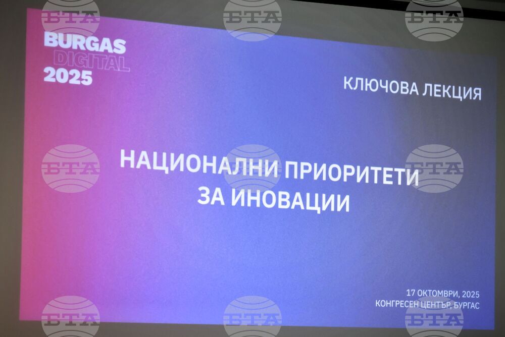 Бургас (17 октомври 2025) Заместник-министърът на иновациите и растежа провежда лекция под надслов „Национални приоритети за иновации". Събитието е част от програмата на третото издание на конференцията за изкуствен интелект, иновации и цифрова трансформация „Burgas Digital 2025". Форумът се провежда днес в Конгресния център на Морска гара.