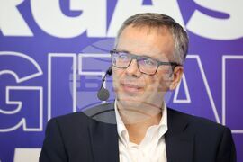 Бургас (17 октомври 2025) Дискусия на тема „Национални стратегии за иновации и трансфер на технологии до 2040 г.“ се провежда в Конгресния център на Морска гара. Събитието е част от програмата на третото издание на конференцията за изкуствен интелект, иновации и цифрова трансформация „Burgas Digital 2025“. Тазгодишното издание на форума се провежда под мотото „Изчисли бъдещето“ и събира на едно място представители на бизнеса, публичния сектор и академичните среди, за да обменят опит и представят най-новите решения в областта на цифровизацията и изкуствения интелект. На снимката: заместник-кметът по Финанси, бюджет, икономика и морско дело на Община Бургас Станимир Апостолов.