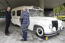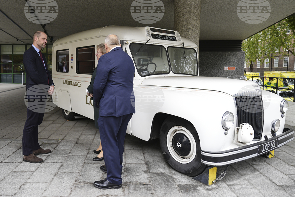 Britain's Prince William, left, speaks with Andy Trotter, Chair of London Ambulance Service NHS Trust, and Chief Paramedic Pauline Cranmer during a visit to the London Ambulance Service at its headquarters in Waterloo, Friday, Oct. 17, 2025. (Aaron Chown/Pool Photo via AP)