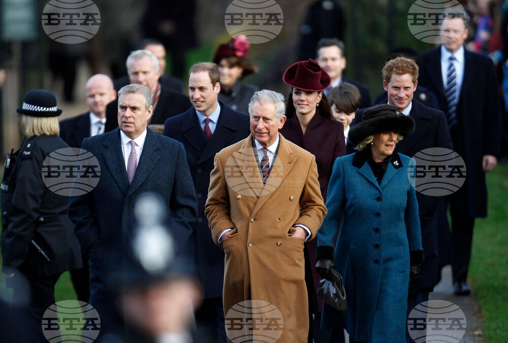 FILE - From left, Britain's Prince Andrew, Prince William, Prince Charles, Kate Duchess of Cambridge, Camilla Duchess of Cornwall and Prince Harry arrive to attend a Christmas Service at St Mary's church on the grounds of Sandringham Estate, the Queen's Norfolk retreat, England, Dec. 25, 2011. (AP Photo/Lefteris Pitarakis, File)