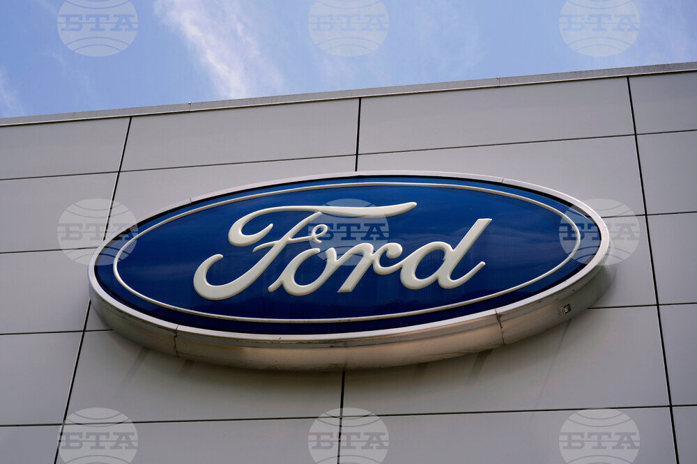 FILE - The Ford logo is seen above the entrance to the Ford Motor Company Kentucky Truck Plant, Wednesday, April 30, 2025, in Louisville, Ky. (AP Photo/Carolyn Kaster, File)