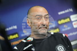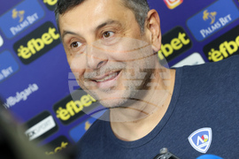 София (17 октомври 2025) Медийна среща преди финалния турнир за Суперкупата на България по волейбол за мъже с участието на Матей Казийски и национали се провежда в зала „Левски“ в Геритадж Парк. На снимката: старши треньорът на Нефтохимик Франческо Кадеду.