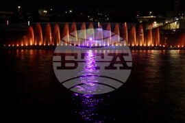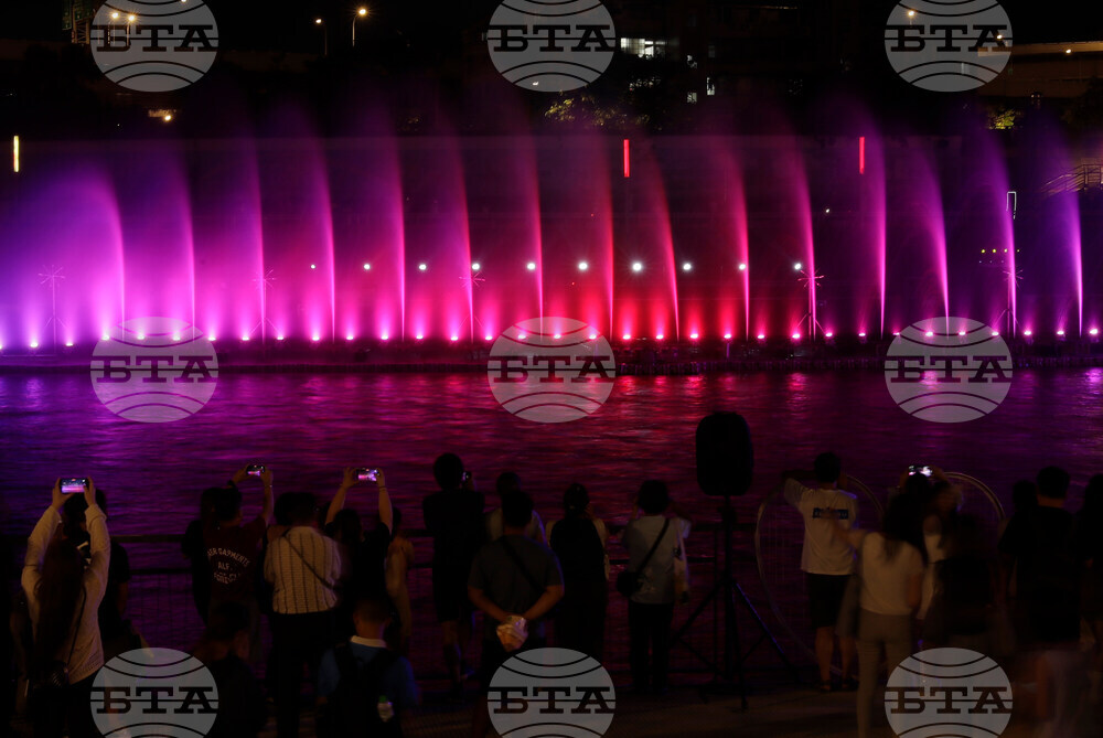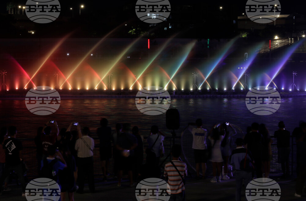 People visit the water dance show in Taipei, Taiwan, Friday, Oct. 17, 2025. (AP Photo/Chiang Ying-ying)