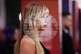 Jennifer Lawrence poses for photographers upon arrival at the premiere of the film "Die My Love" during the London film festival in London, Friday, Oct. 17, 2025. (Photo by Scott A Garfitt/Invision/AP)