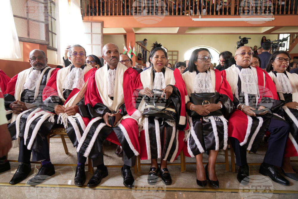 Madagascar judges sit inside the main chamber of the nation's High Constitutional Court, ready to swear in Col. Michael Randrianirina as president in Antananarivo, Madagascar, Friday, Oct. 17, 2025. (AP Photo/Brian Inganga)