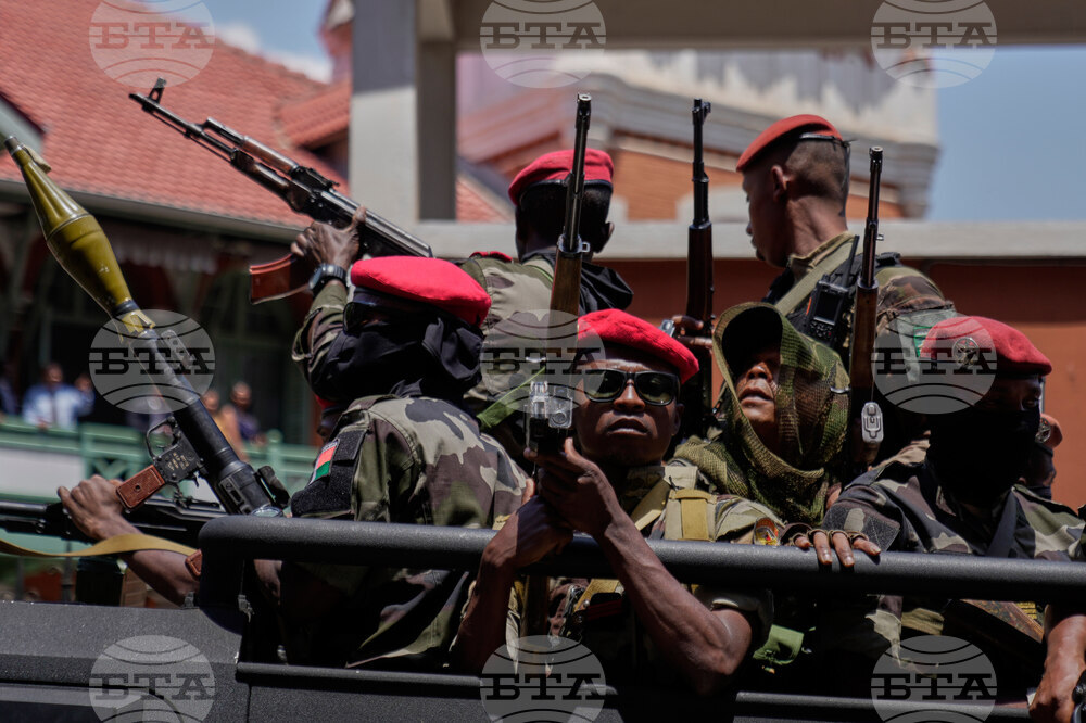 Soldiers loyal to Col. Michael Randrianirina guard the entrance of the high constitutional court in Antananarivo, Madagascar, Friday, Oct. 17, 2025. (AP Photo/Brian Inganga)