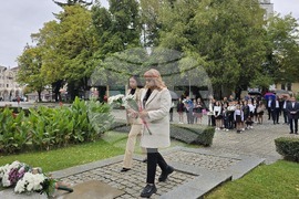 Гоце Делчев (17 октомври 2025) С множество прояви бе отбелязана 113-ата годишнина от Освобождението на Гоце Делчев. На снимката: представителят на БСП - Гоце Делчев Гергана Орманлиева (вляво).