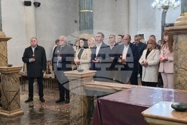Гоце Делчев (17 октомври 2025) С множество прояви бе отбелязана 113-ата годишнина от Освобождението на Гоце Делчев. На снимката (от ляво надясно): народният представител от БСП-ОЛ Кирил Добрев, представителят на БСП - Гоце Делчев Гергана Орманлиева, председателят на Общински съвет - Гоце Делчев Иван Геров, кметът на Гоце Делчев Владимир Москов, отец Георги.