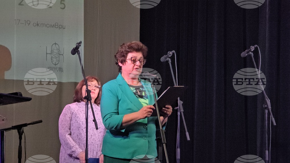 Ловеч (17 октомври 2025) В Ловеч се откри вторият национален хоров фестивал „Панайот и Любомир Пипкови“. Фестивалната програма започна с концерт на специалните гости – Общински хор „Гена Димитрова“ – На снимката: представителят на сдружение „Ключ“ - Димитрина Дренска.