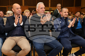 Пловдив (17 октомври 2025) В Първо студио на Българското национално радио - Радио Пловдив - на специална церемония се представя автобиографичната книга на легендарния български футболист Петър Зехтински. На снимката (от ляво надясно): кметът на Пловдив Костадин Димитров, бившият футболист Христо Стоичков и капитанът на Ботев Пловдив Тодор Неделев.