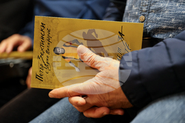 Пловдив (17 октомври 2025) В Първо студио на Българското национално радио - Радио Пловдив - на специална церемония се представя автобиографичната книга на легендарния български футболист Петър Зехтински. На снимката: президентът на Република България (1997-2002) Петър Стоянов.