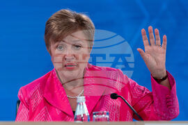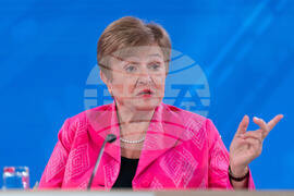 International Monetary Fund (IMF) Managing Director Kristalina Georgieva speaks during a news conference after the International Monetary and Financial Committee (IMFC) meeting, during the World Bank/IMF Annual Meetings at the International Monetary Fund (IMF) headquarters in Washington, Friday, Oct. 17, 2025. (AP Photo/Jose Luis Magana)