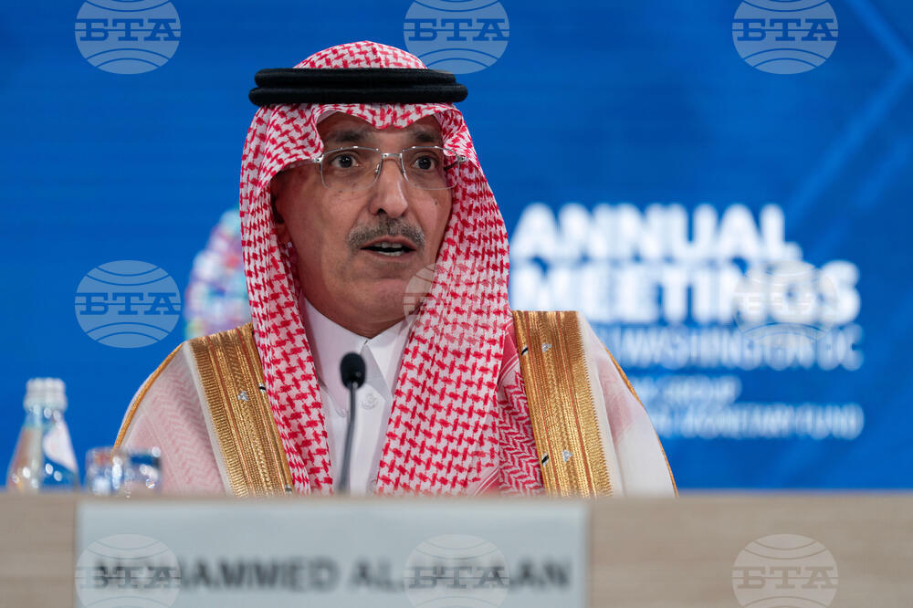 International Monetary and Financial Committee (IMFC) chair, Saudi Arabia's Finance Minister Mohammed Al-Jadaan speaks during a news conference after the International Monetary and Financial Committee (IMFC) meeting, during the World Bank/IMF Annual Meetings at the International Monetary Fund (IMF) headquarters in Washington, Friday, Oct. 17, 2025. (AP Photo/Jose Luis Magana)